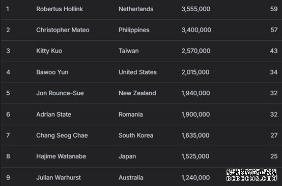 法国选手Axel Hallay(1,479,500)位列第三,也是除CL外唯一记分牌突破七位数的选手。